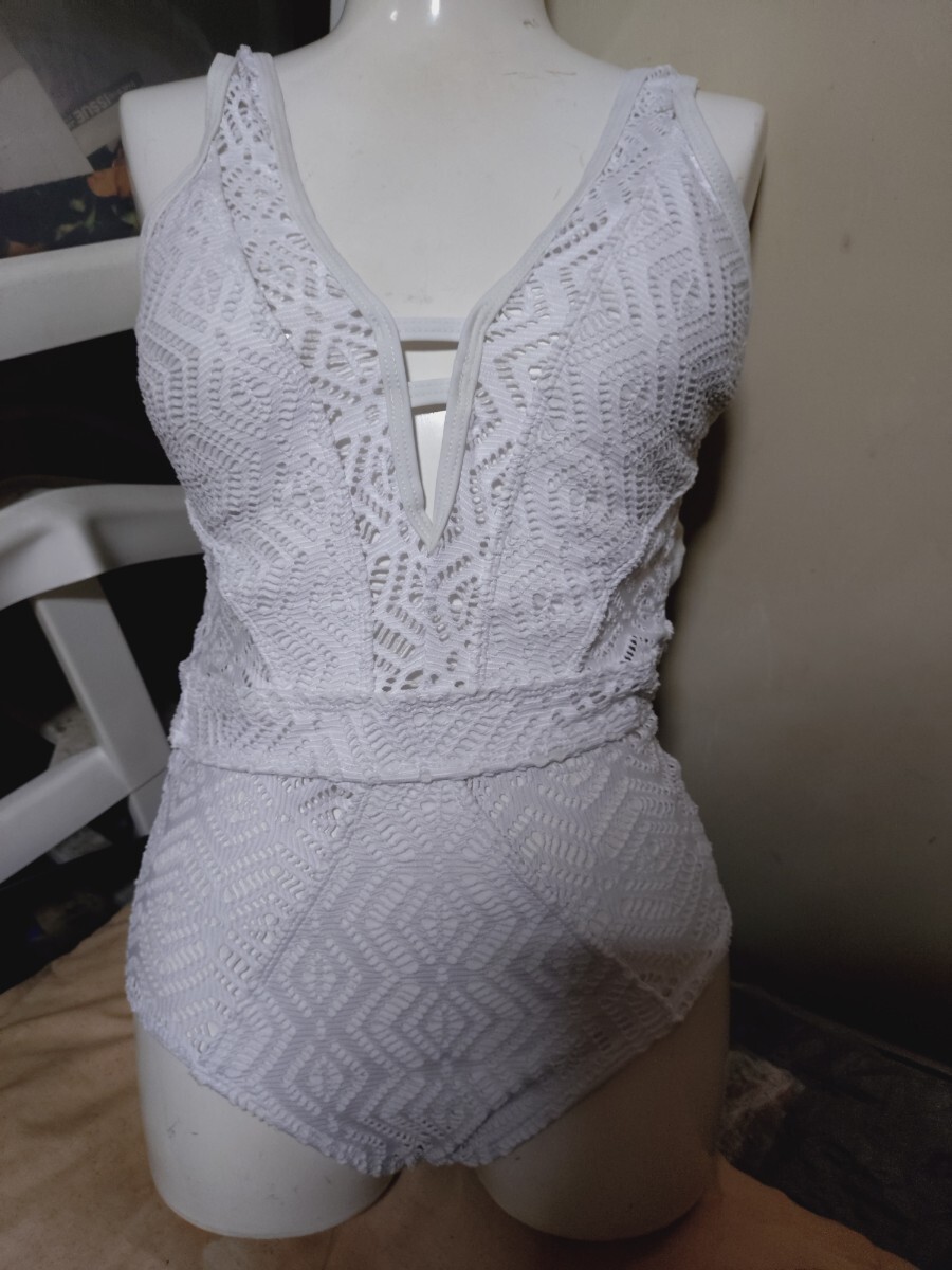 - M4407◆BALIBIKI◆ホワイト2枚地◆一部シースルー◆セレブな大胆ホワイト系ワンピース水着◆フリーサイズ