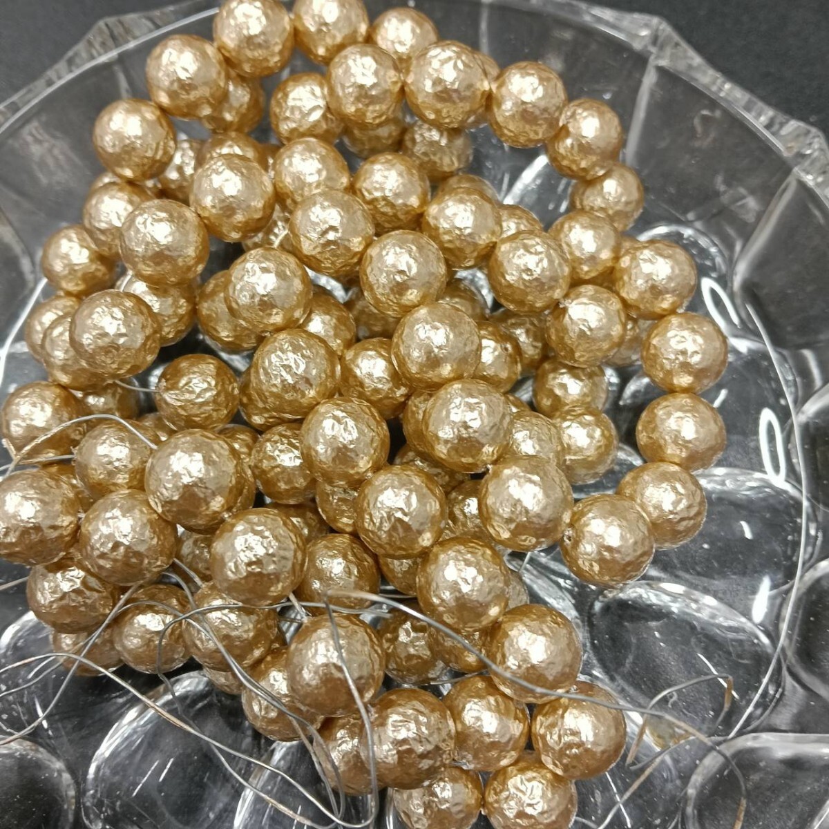 > ☆未使用 大量 シュリンクパール ビーズ ラウンド 約121g 12mm ゴールド色 イミテーション 大粒 ヴィンテージ アクセ ネックレス S-318