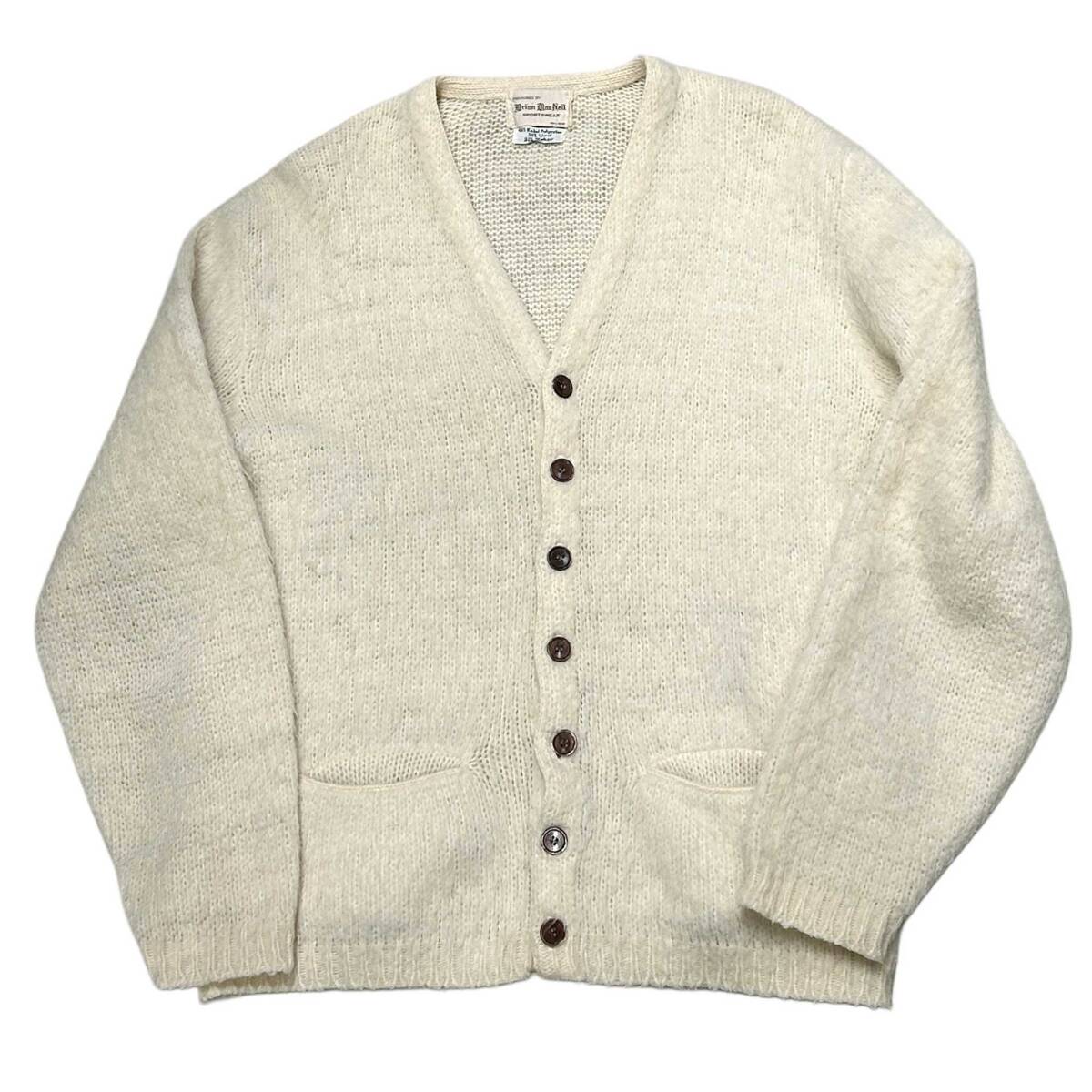 - 希少 XL【60s ビンテージ Brian MacNeil シャギー モヘア カーディガン ニット ホワイト】アメリカ USA グランジ カートコバーン