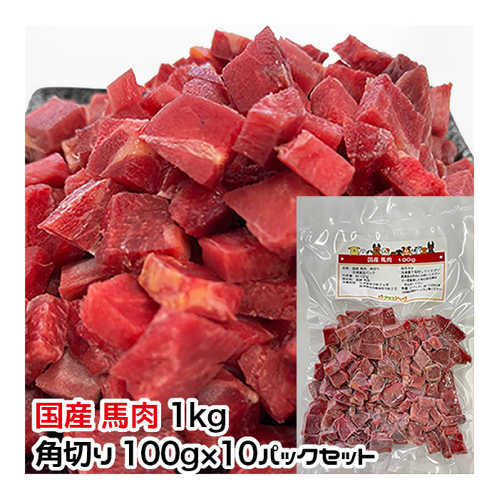 - 犬用・猫用 国産 馬肉 1kg 角切り100g×10パック 冷凍真空パック【クール便発送】犬 猫 手作りごはん