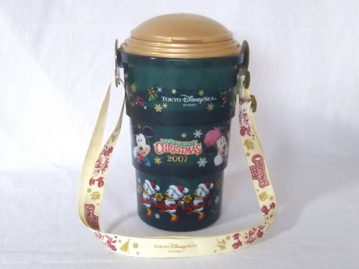 - ★グッズ★ディズニーシー ポップコーンバケット ハーバーサイド・クリスマス 2007 ミッキー ミニー ダークグリーン 伸縮式 現状渡し