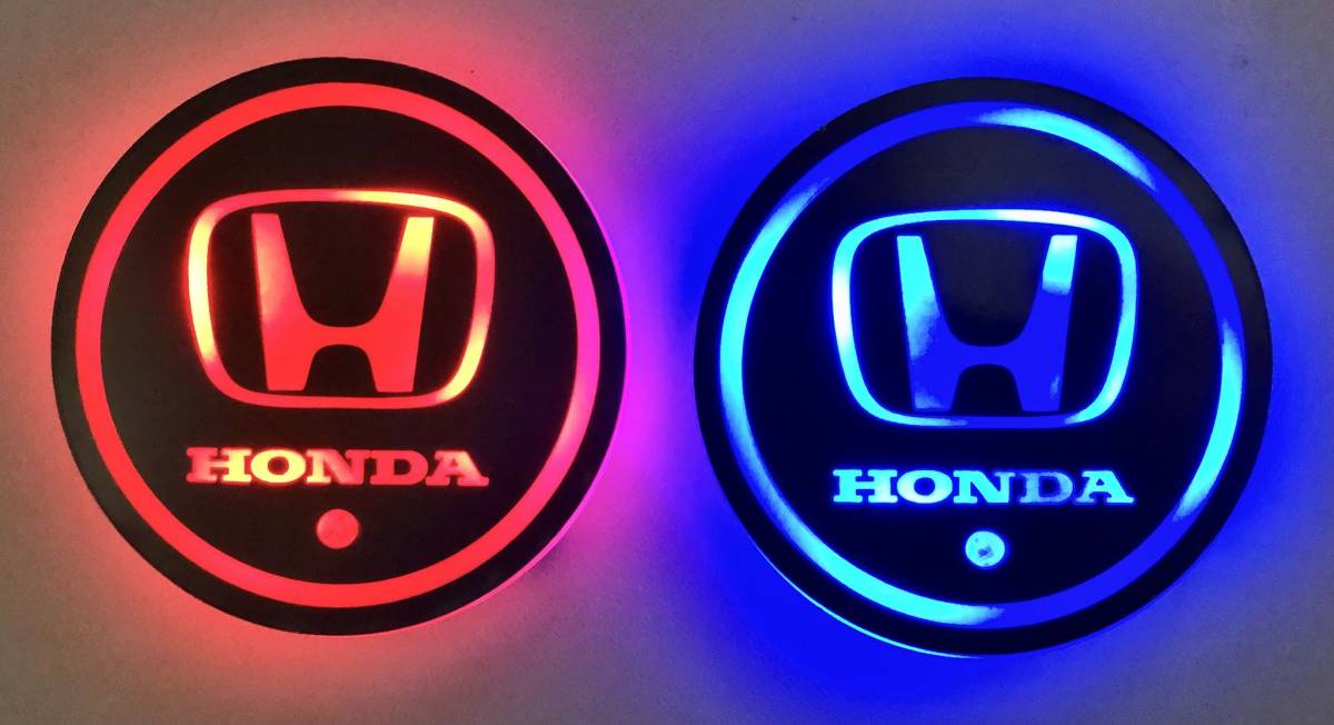 - ホンダ車簡単カスタム 光るLEDコースター 2個セット ドリンクホルダー 車内装アクセサリー HONDA