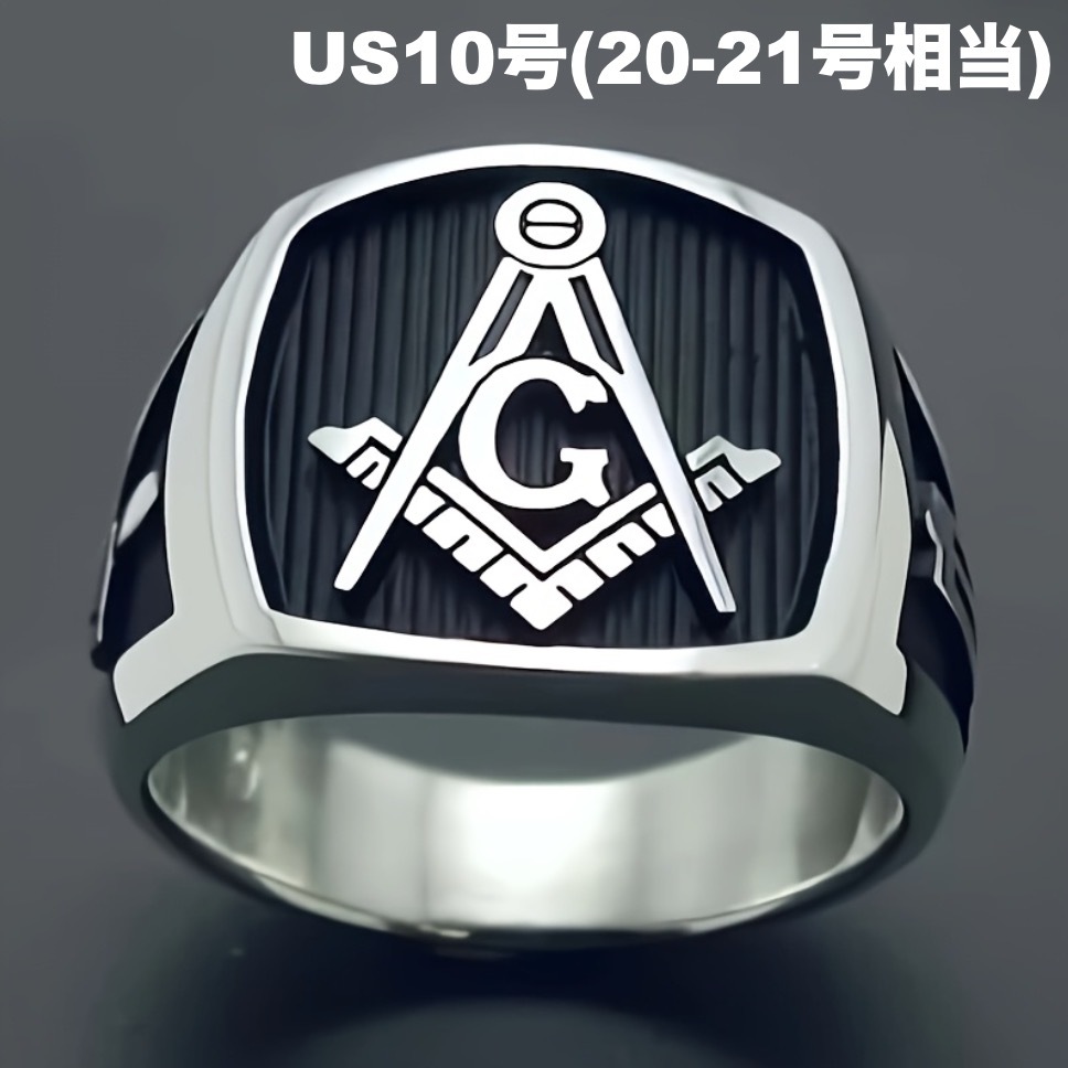 - 指輪 フリーメイソン リング メンズ アクセサリー 重量感 シルバー ブラック 金属 US10号 20~21号相当 おしゃれ 男性用 目立つ t6991