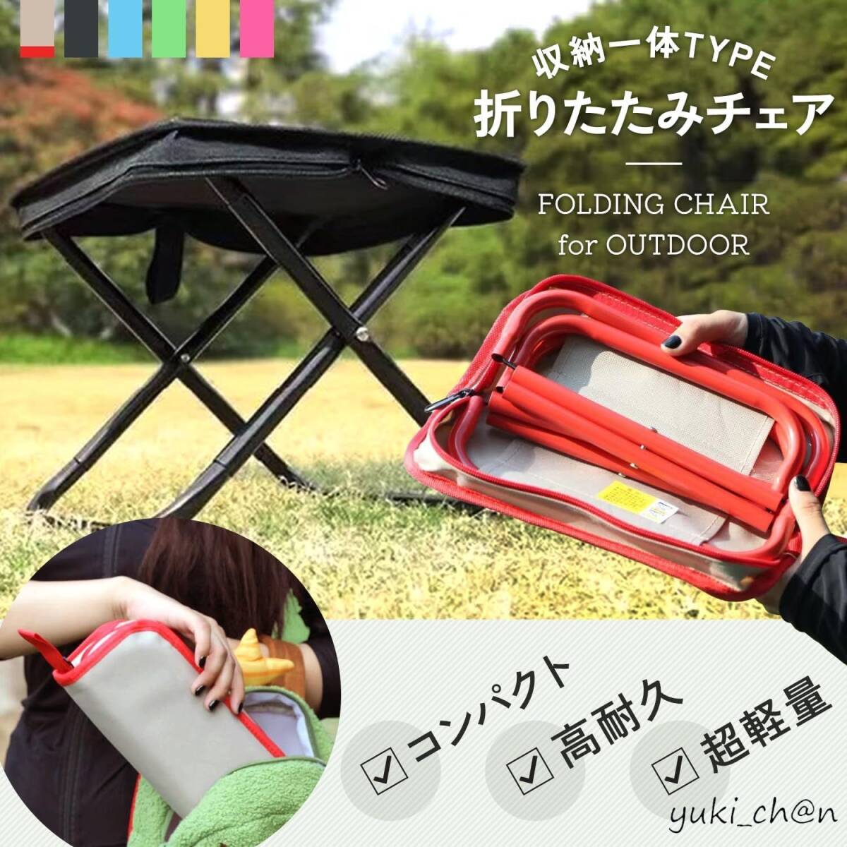 - 折りたたみ椅子 アウトドアチェア ハンドストラップ付き 軽量 コンパクト 収納 順番待ち 運動会 釣り バーベキュー ブラック 日本語説明書