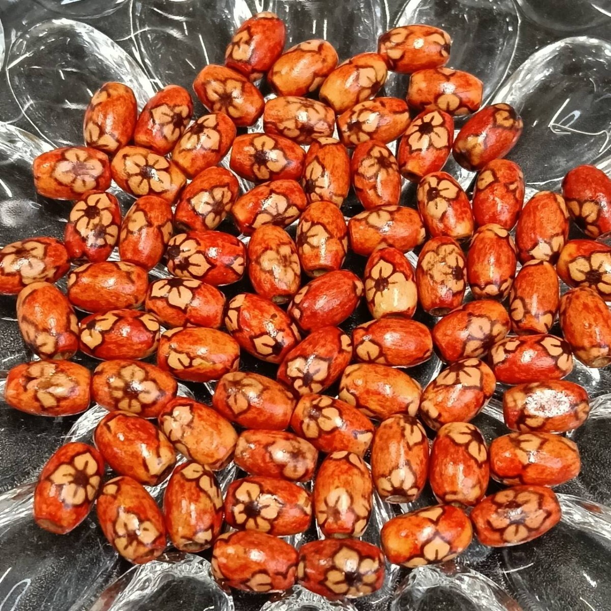> ☆未使用 大量 ウッドビーズ オーバル ラウンド 約17g 12×8mm 朱色 花柄 ヴィンテージ パーツ アクセサリー ネックレス イヤリングB-287
