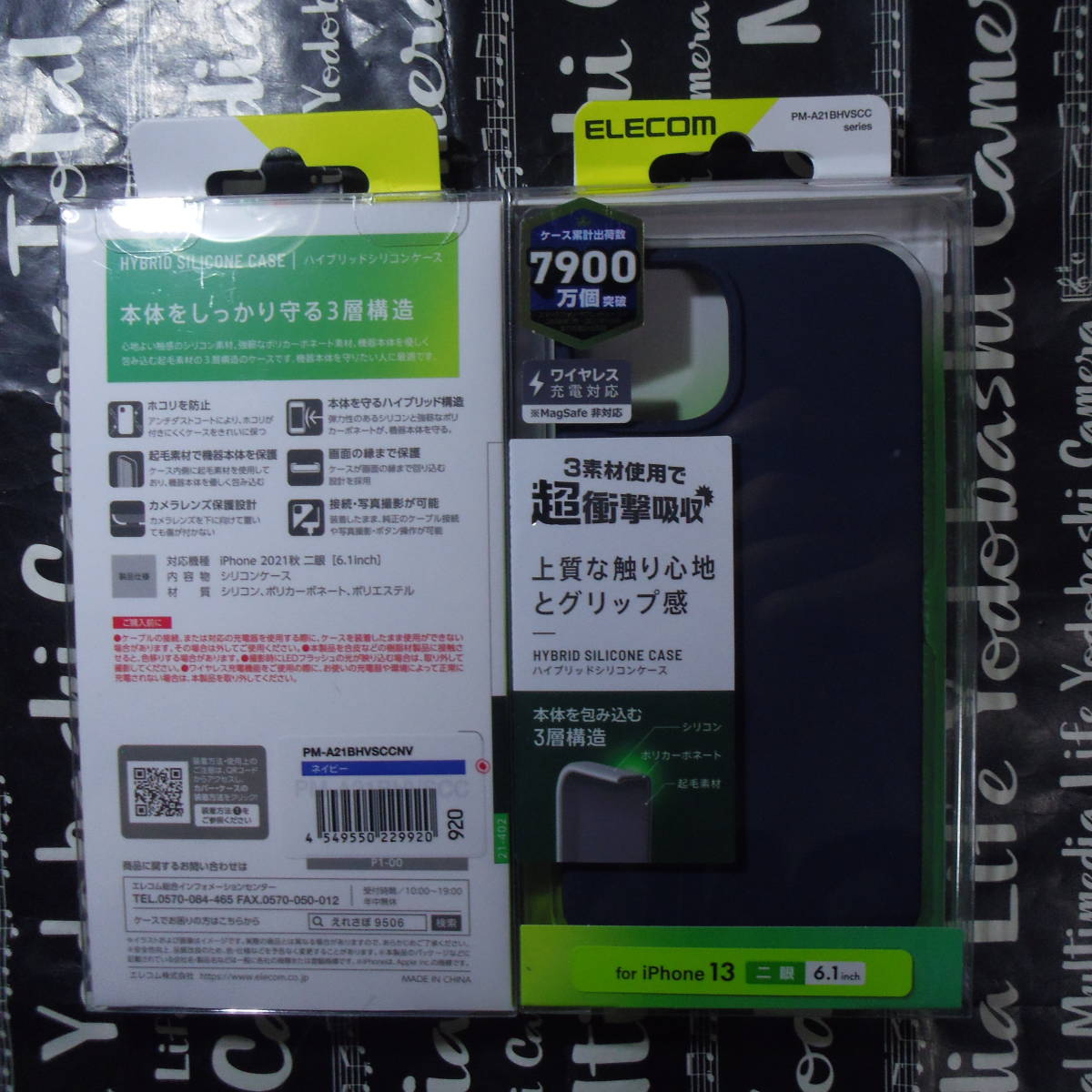 - ELECOM iPhone 13 iPhone 14(2眼) ネイビー ハイブリッドケースシリコン カラー 3層構造本体をしっかり守るハイブリッドシリコンケース