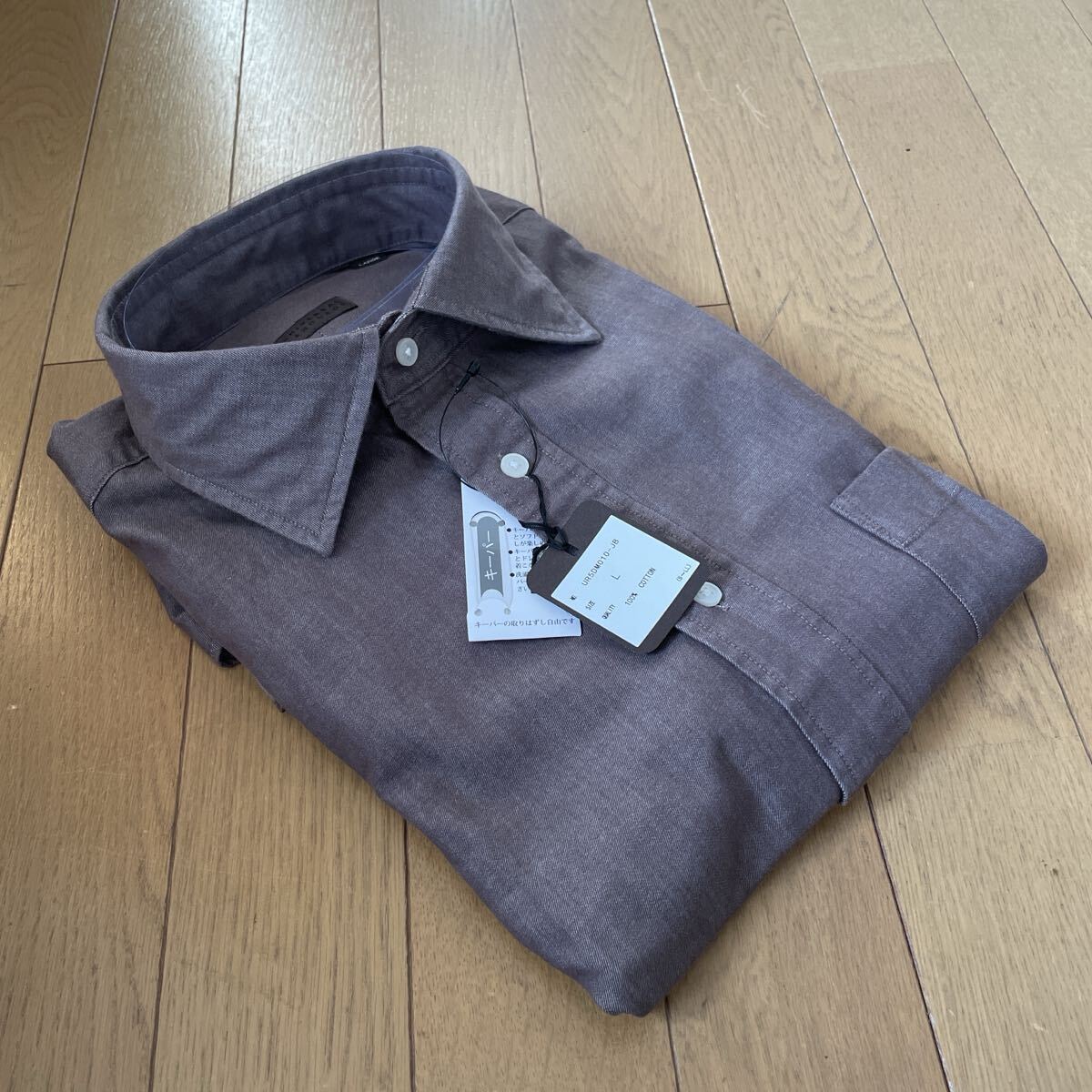 - ユニバーサルランゲージ 長袖ドレスシャツ インディゴ こげちゃ サイズL 新品