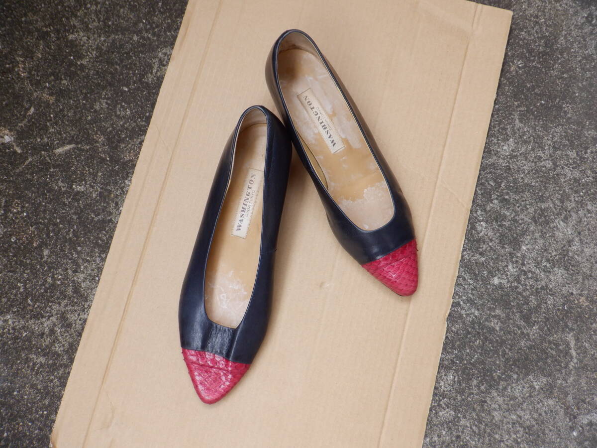 - 銀座ワシントン靴店 パンプス 黒に近い濃紺 本革製 24 1/2cm 日本製 優良品