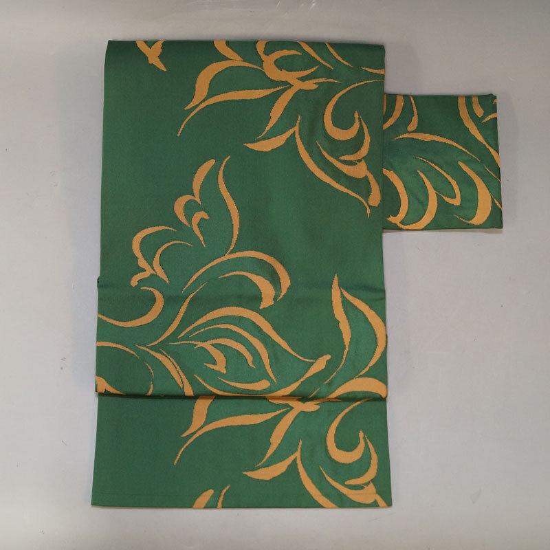 - ye19 八寸名古屋帯 絹 緑 グリーン ベージュ 茶 緑 仕立仕上がり品 着物帯 和服 和装