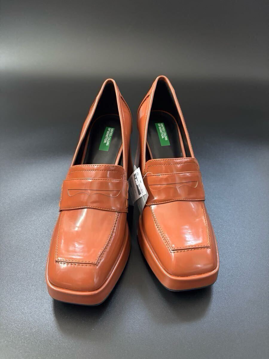 - 【新品・未使用】キズ有り ベネトン ローファー パンプス 靴 チャンキーヒール 9cm 茶 ブラウン 24.5cm 衣装