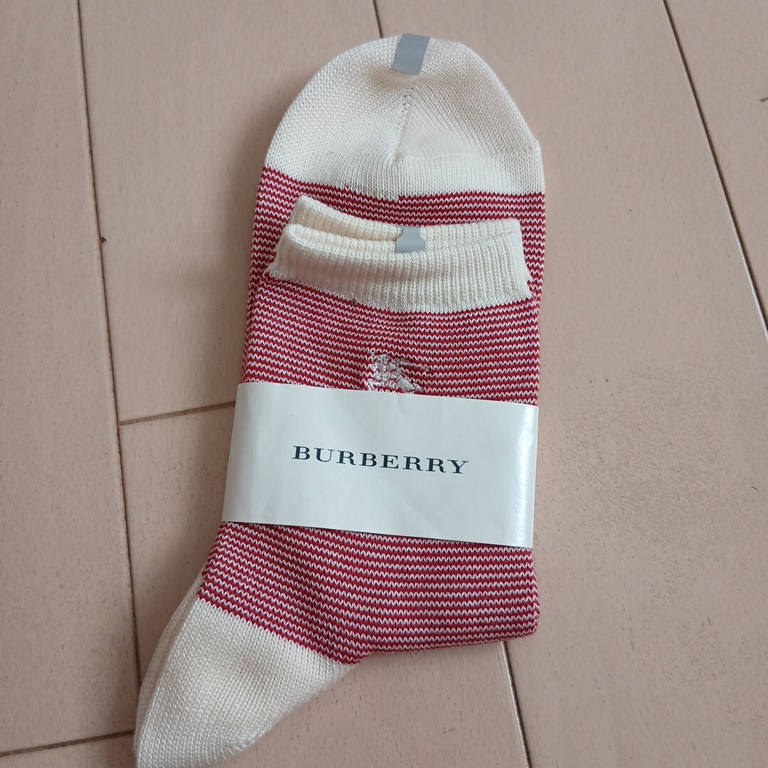 - バーバリー 紳士靴下 ソックス ショート丈ソックス ボーダー ロゴ刺繍 25-27㎝