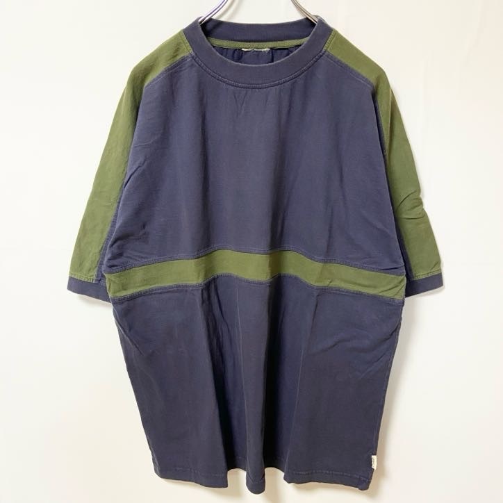 > 古着 used 半袖Tシャツ レトロデザイン クルーネック シンプル ネイビー カーキ ビックシルエット XLサイズ