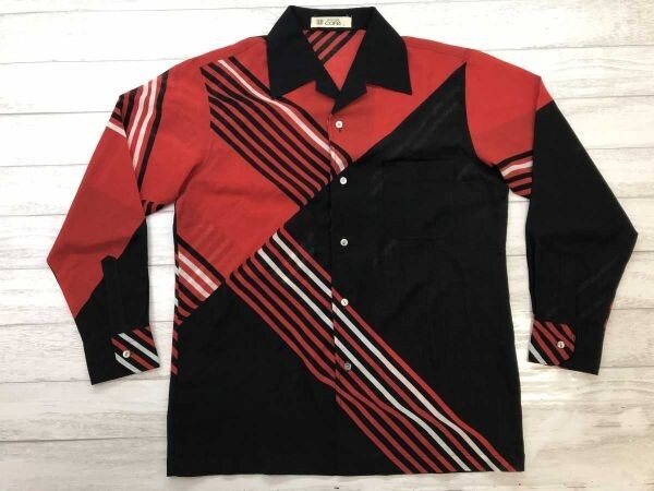 - MEN'S FASHION CORE レトロ オールド 配色切替 胸ポケット 透け感 レトロ オープンカラー 開襟 長袖シャツ メンズ ポリエステル100% L