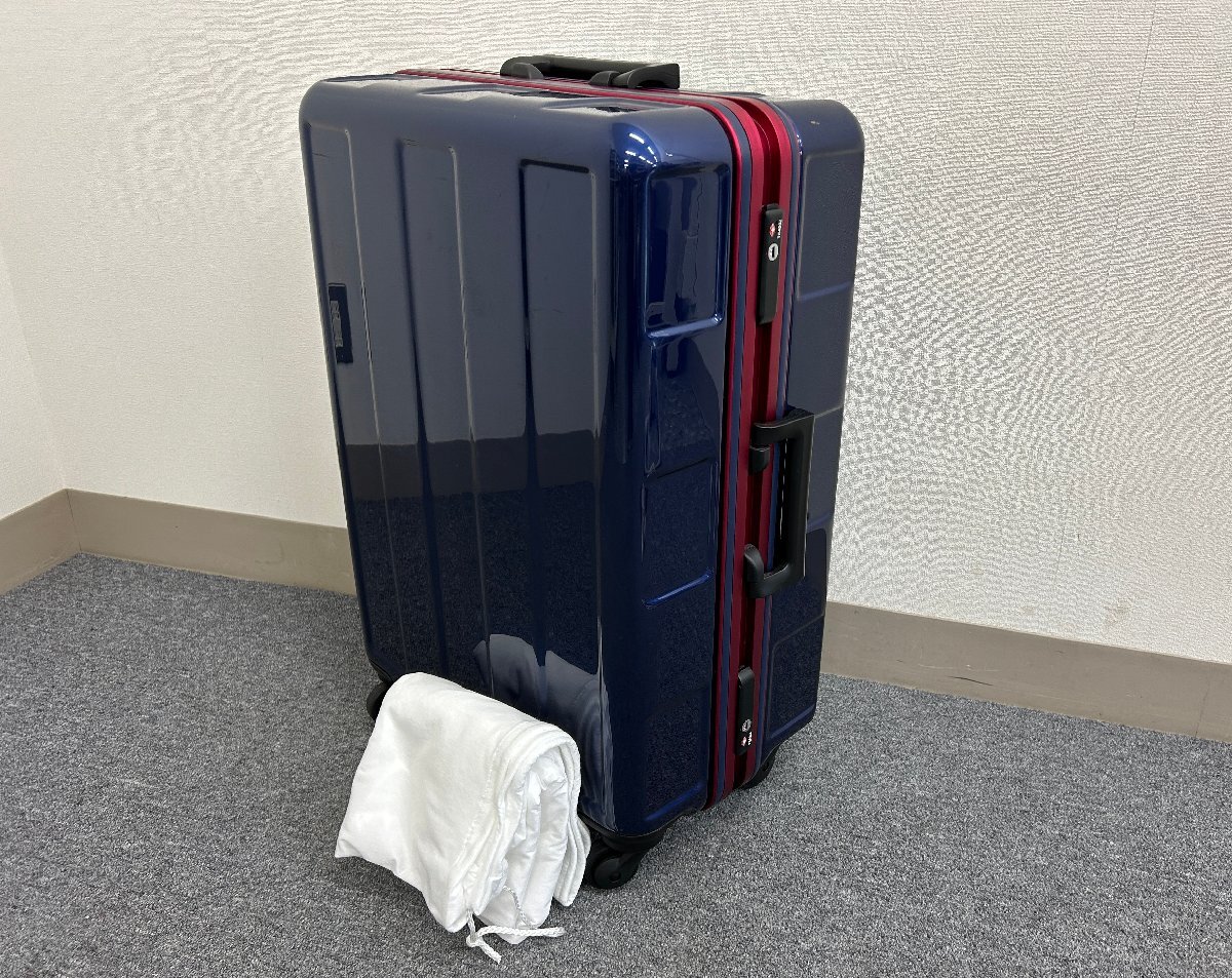 > 【中古品】AdvanceBooon アドバンスブーン キャリーケース 67L Lサイズ 4輪 ネイビー&レッド スーツケース TASロック 鍵なし
