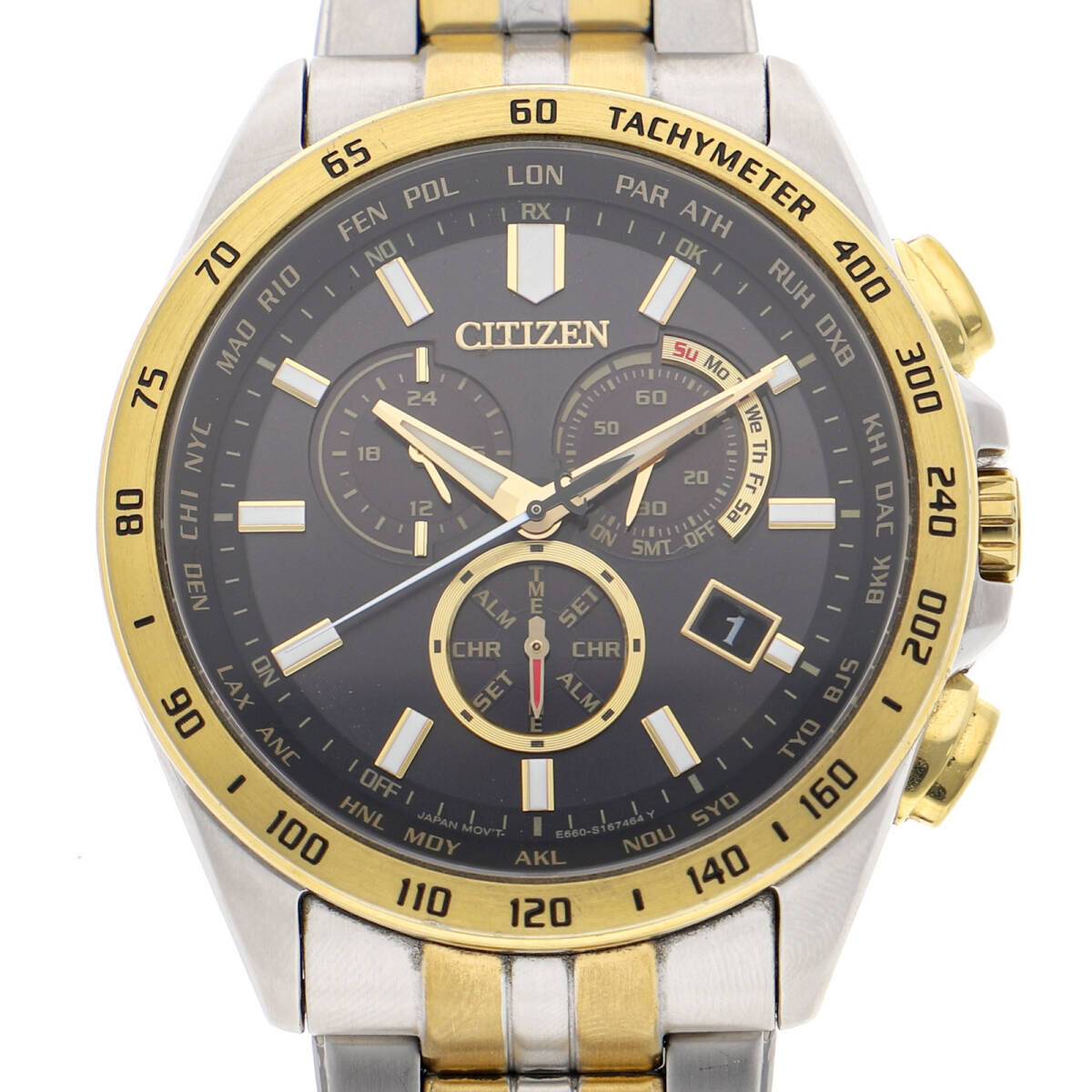 - CITIZEN シチズン E660-S122244 エコドライブ ブラックダイヤル SS/GP ソーラー メンズ【133564】