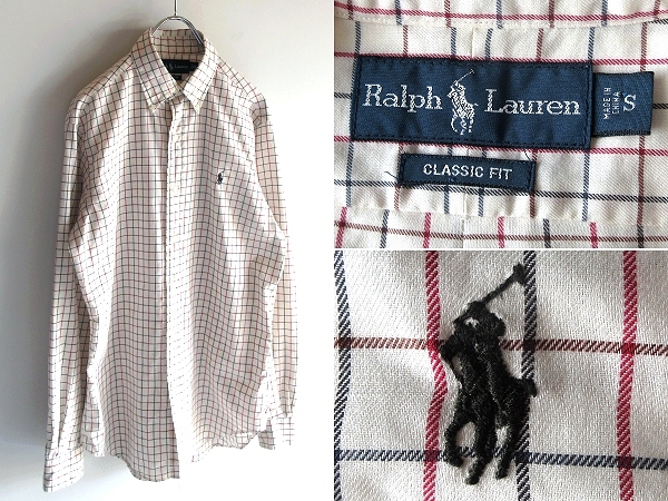 - 希少 90sビンテージ Ralph Lauren ラルフローレン CLASSIC FIT ポロポニーロゴ刺繍 チェックシャツ BDシャツ S RN41381 USA企画 ネコポス可