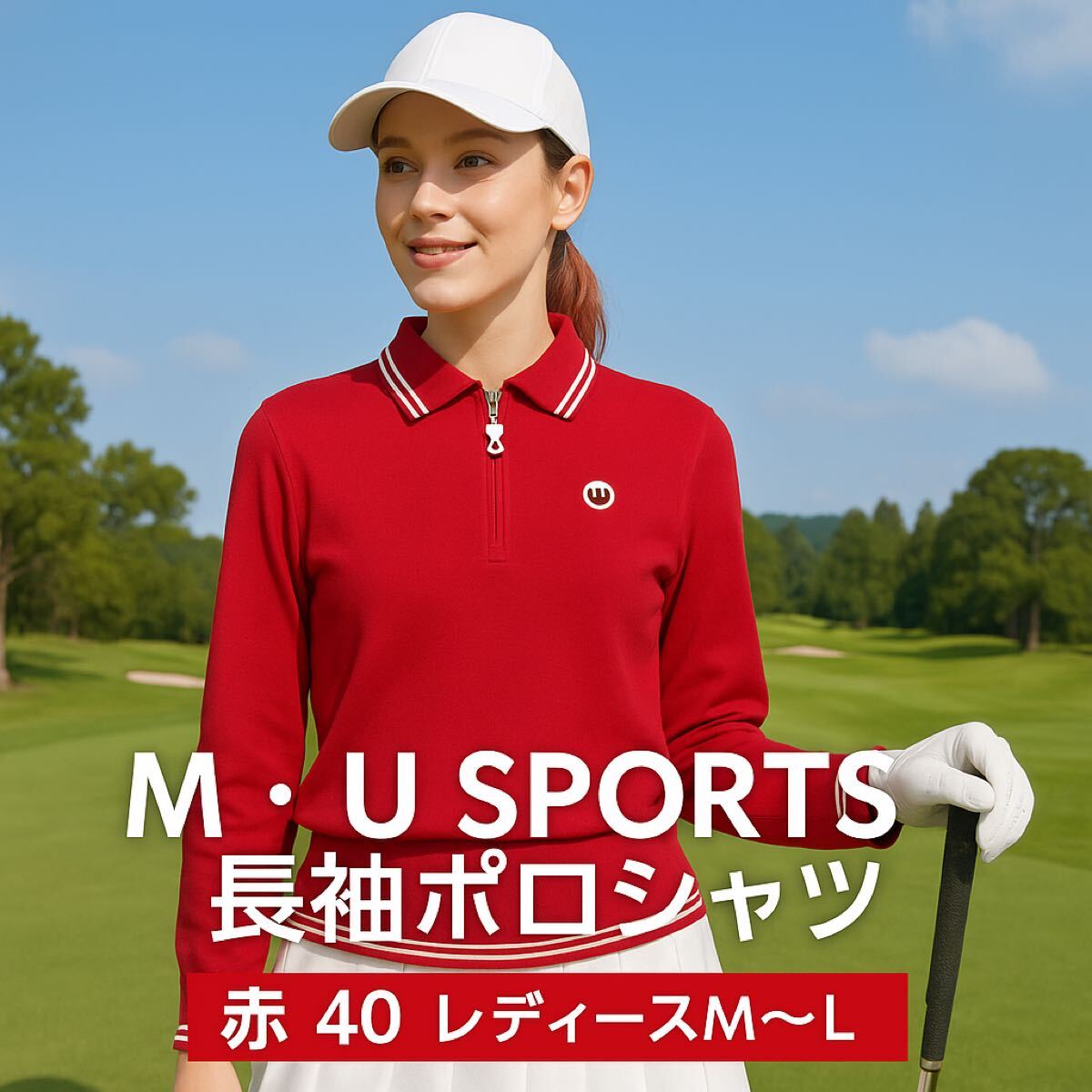 - M・U SPORTS ミエコウエサコ 長袖ポロシャツ 赤 レディース40 M〜小さめL ゴルフウェア