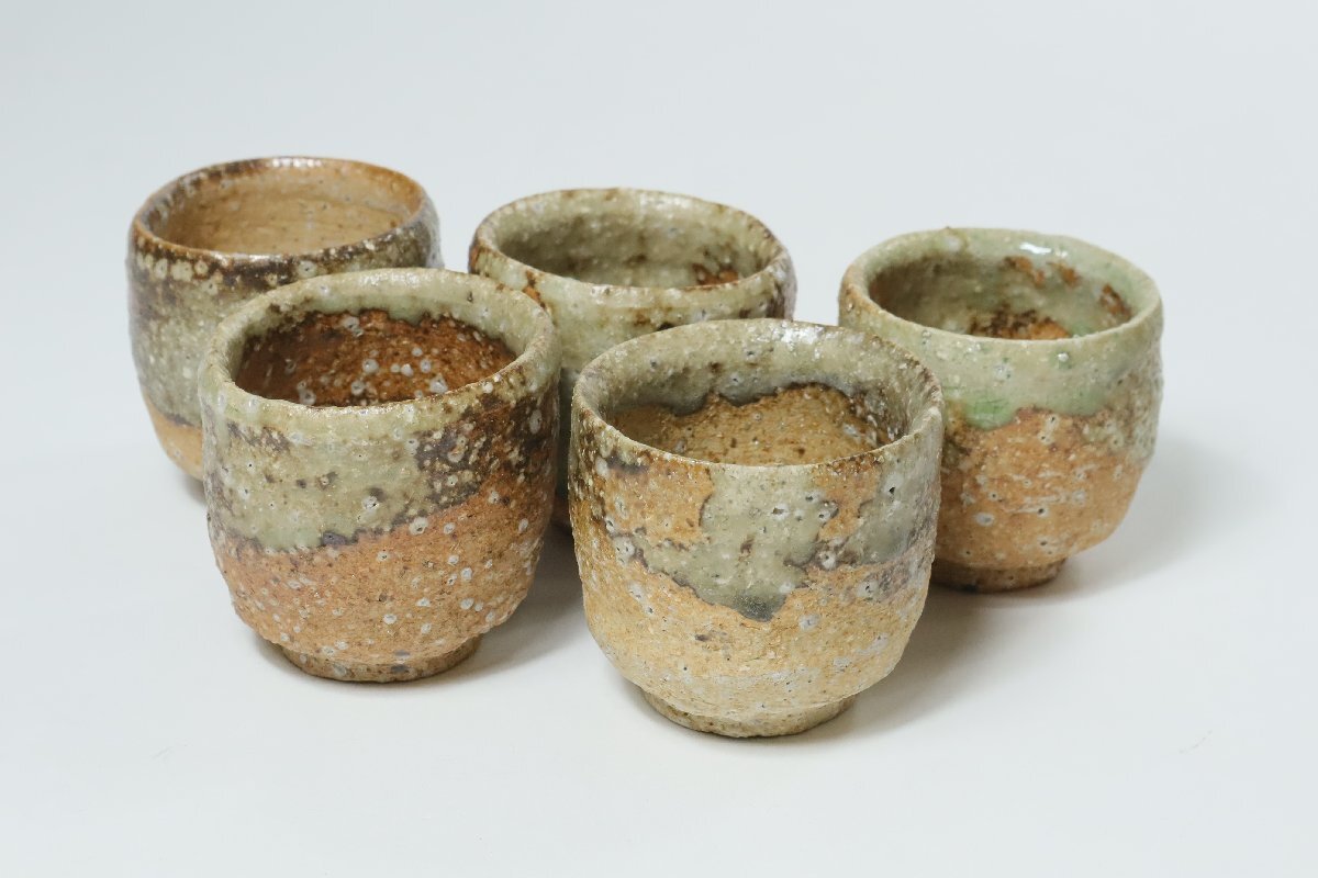 ・坂田甚内 灰釉 湯呑 五客 /益子焼 信楽 湯飲み