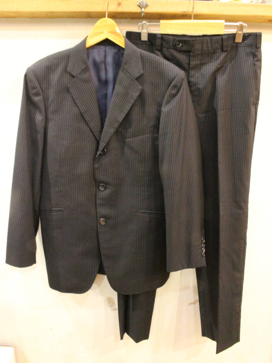 > イタリア製 E.THOMAS イー トーマス 春夏用 ウールストライプスーツ シングル 3つボタン ダークグレー エルネスト・トーマス
