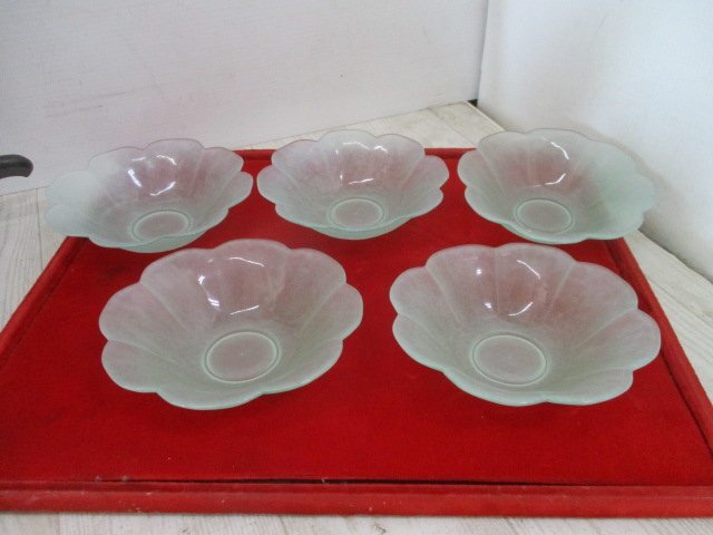 - i.mic.7 ガラス器 5客 食器 かき氷 サラダボウル デザート皿 小皿 うすグリーン色 ②