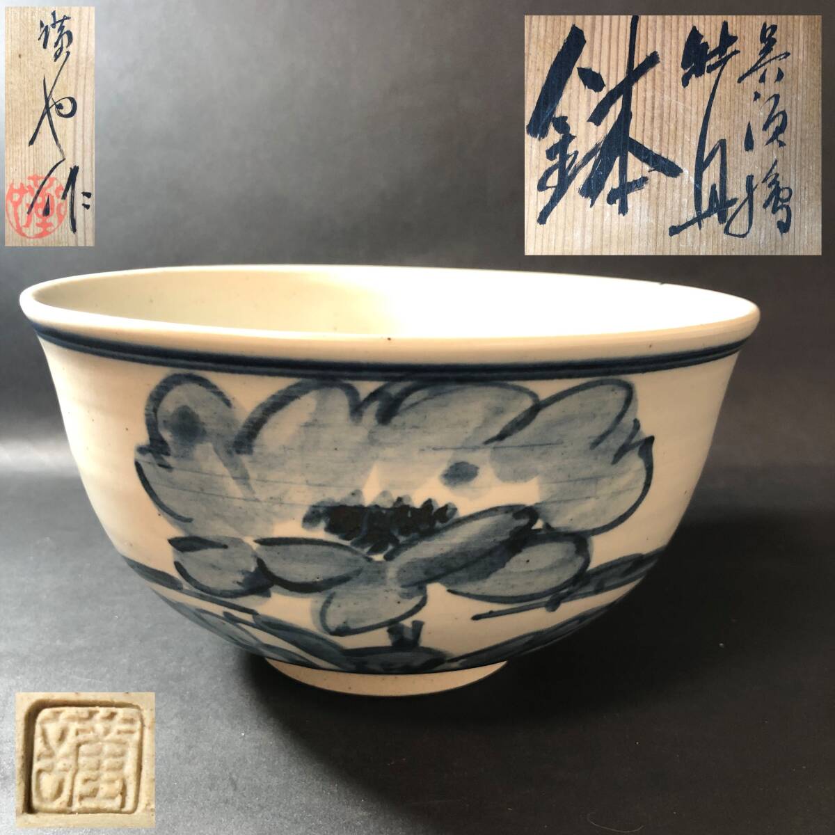 - 呉須絵 牡丹 鉢 萬古焼 共箱 茶道具 菓子器 鉢 和骨董 骨董雑貨