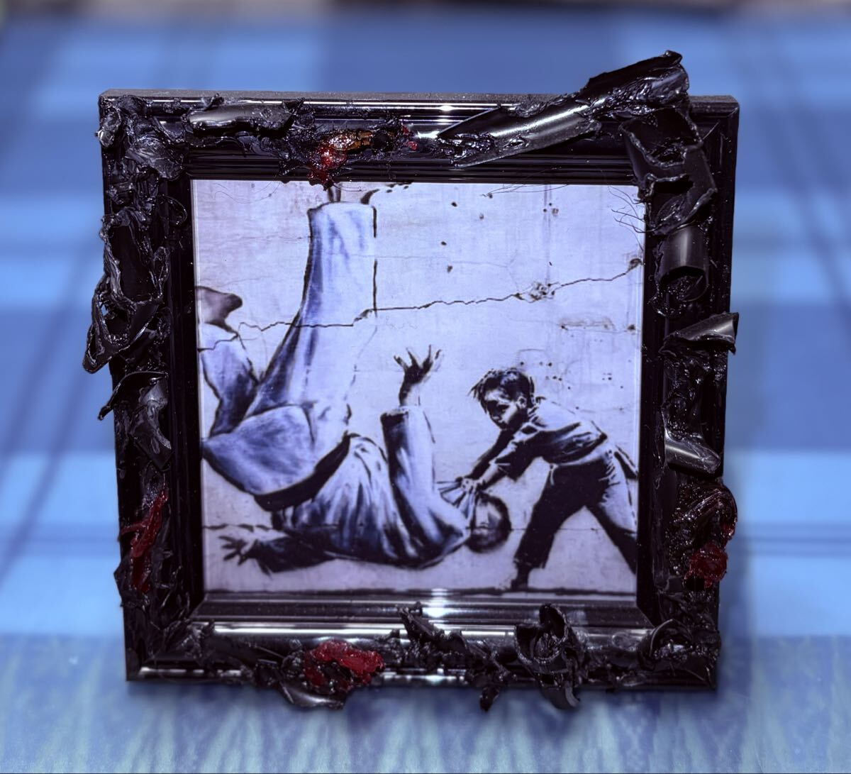 - バンクシー 柔道家を投げ飛ばす子供 卓上オブジェ額縁 フォトフレーム アンティーク 額装 コレクション ガラス製品