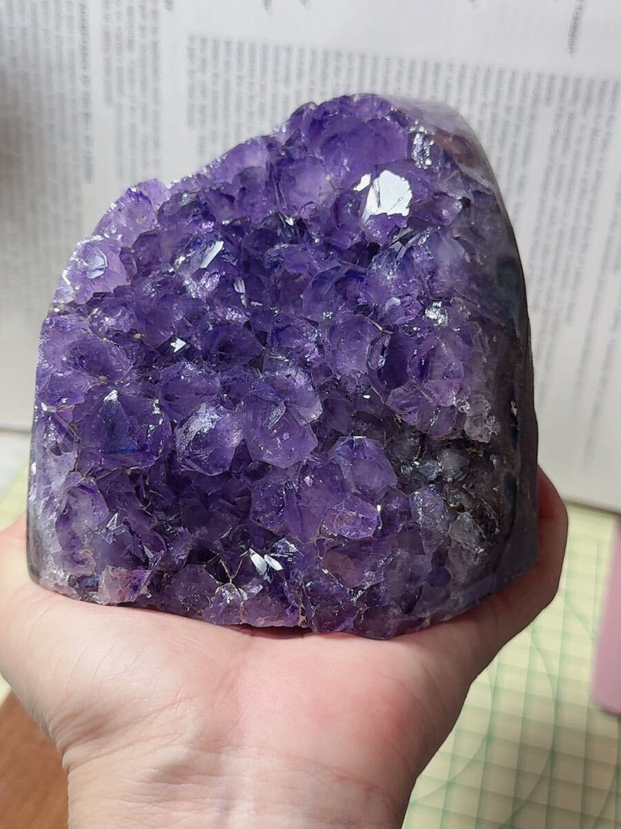 - SS-0328天然石 アメジスト クラスター 天然水晶 金銭運 原石 浄化 鉱石 ドーム 置物 一点物 パワーストーン 九紫火星運 1490g