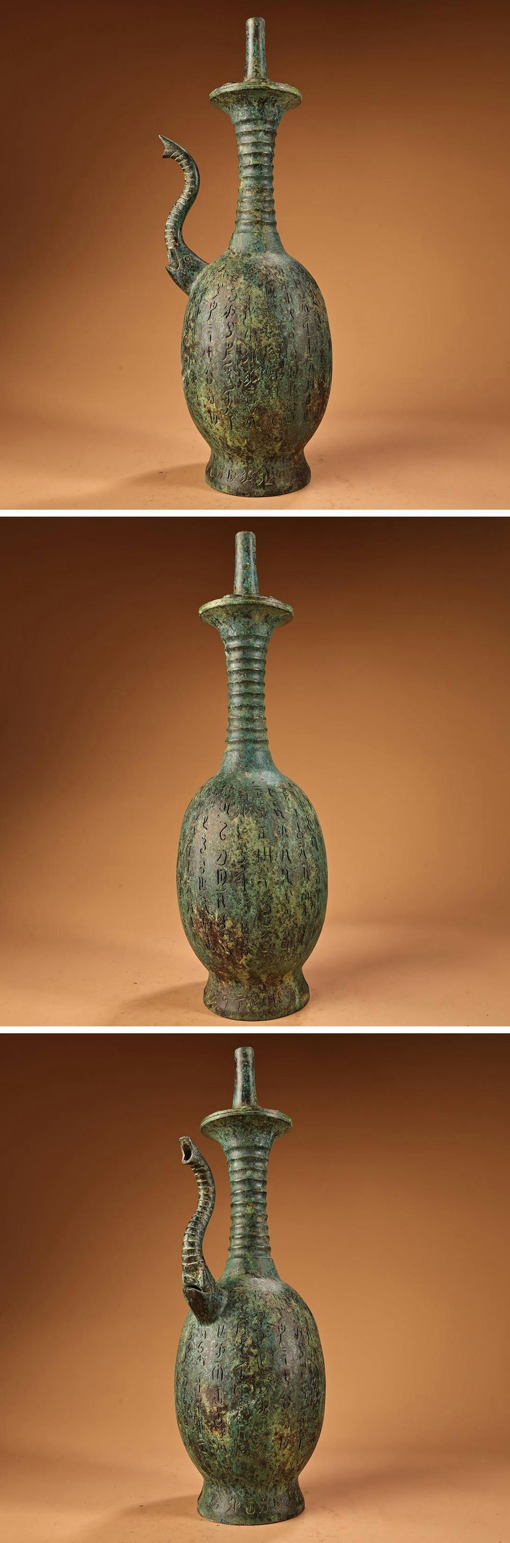 - ◆羽彰・古美術◆Y7981西周時代 青銅器 青銅銘文大象最酒壺 細密細工★古置物★古賞物★古擺件★蒐集家放出★唐物
