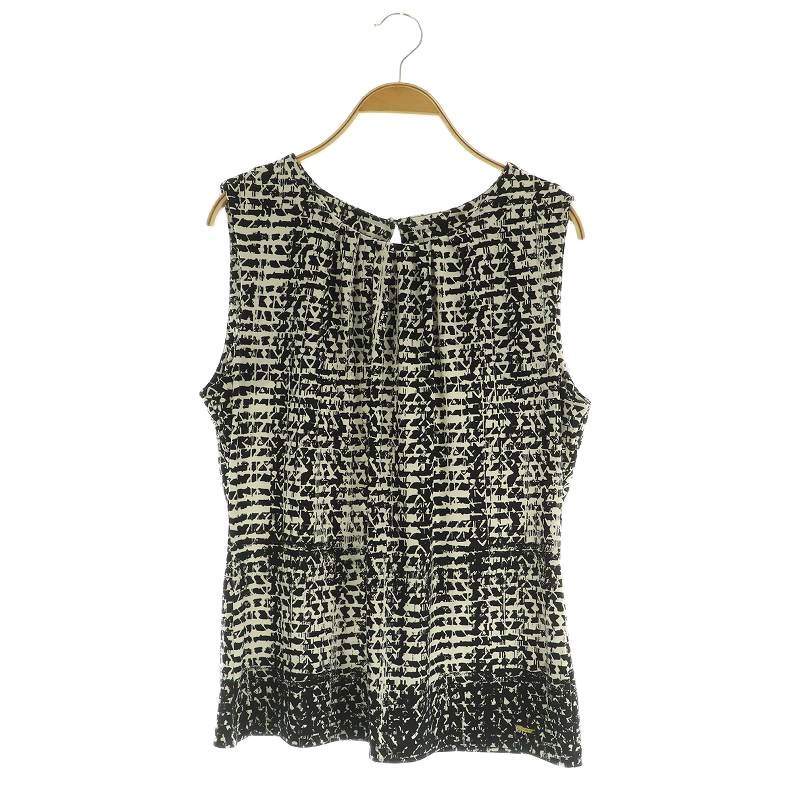 > カルバンクライン CALVIN KLEIN カットソー ノースリーブ 総柄 タック M ブラック /MY ■OS レディース