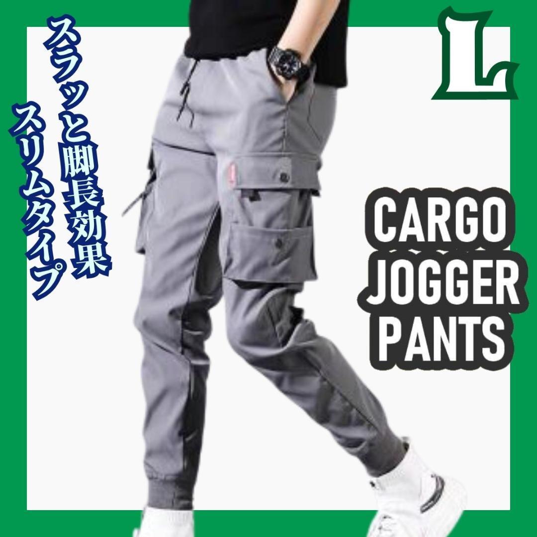 - ジョガーパンツ L カーゴパンツ グレー 細見え ストカジ 脚長効果 スリム