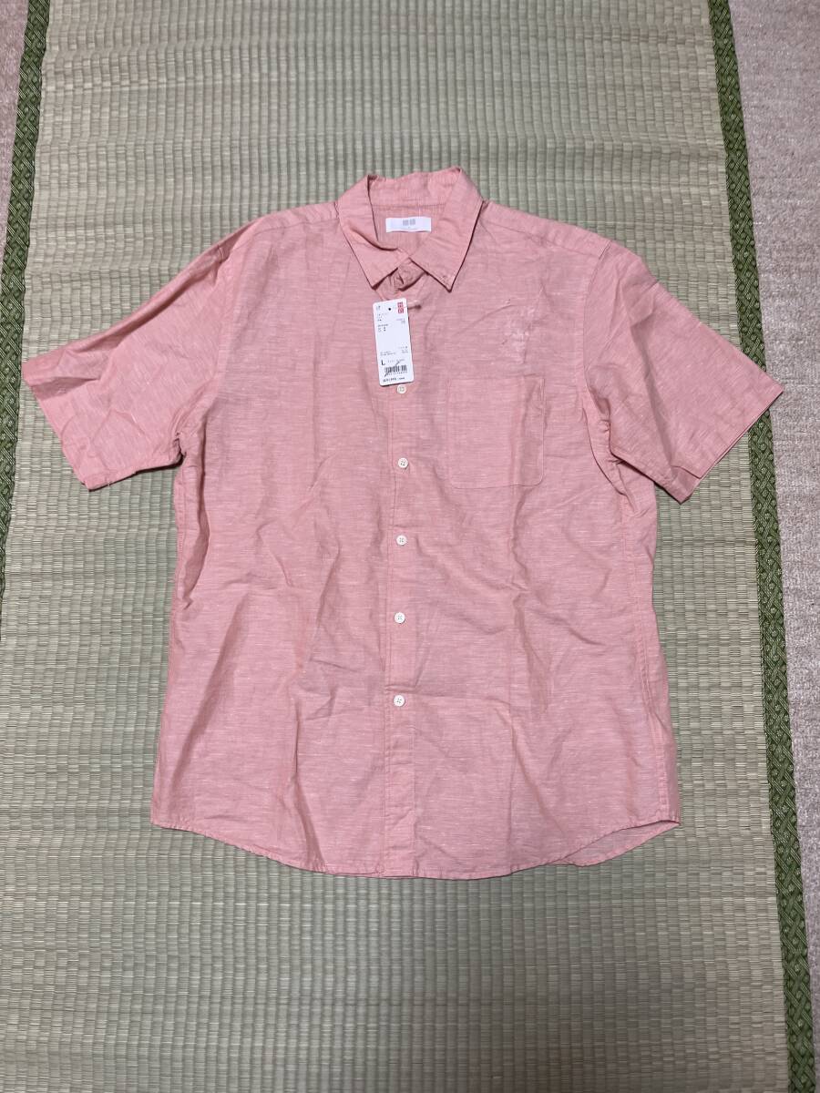 > UNIQLO ユニクロ リネンコットンシャツ 半袖 24Orange 表記L 1990+税 新品未使用 人気 デザイン 定番 メンズ カジュアル ファッション