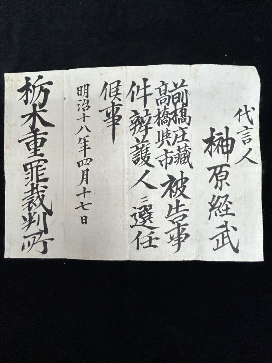 - 明治18年『事件弁護人選任状』栃木重罪裁判所・代言人(弁護士)選任状 ・衆議院議員 栃木市長 榊原経武【 古文書 古書 和書 任命 裁判