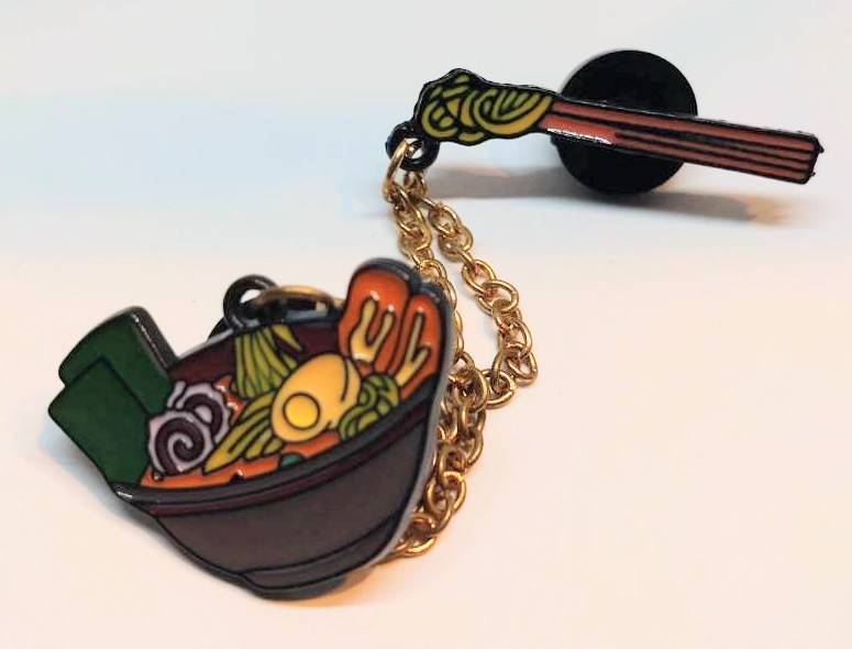 - 送料無料 ラーメン 箸 チェーン ピンブローチ ピンズ PINS バッジ アメリカン雑貨 スマアク