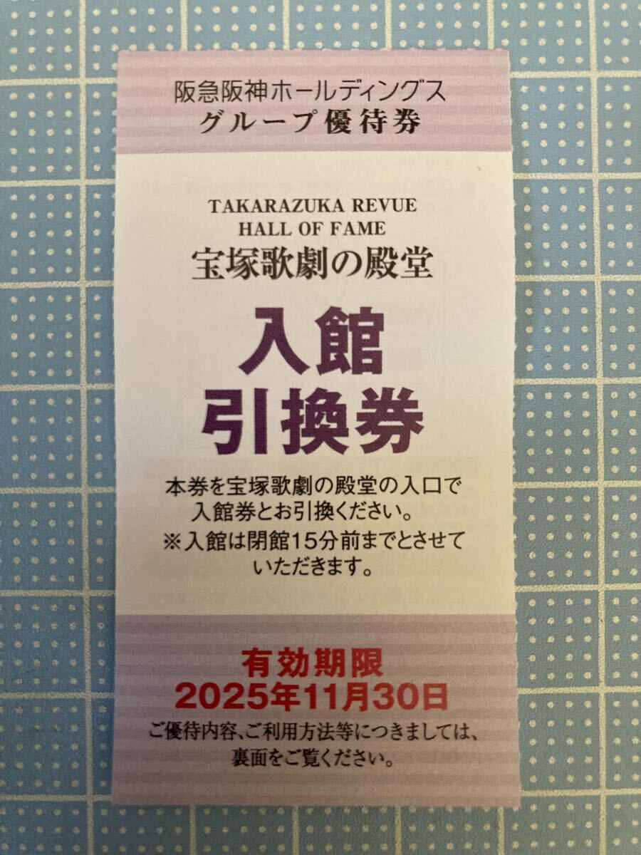 - 1枚 40円 即決! 迅速発送◆宝塚歌劇の殿堂 入館引換券 阪急阪神ホールディングス株主優待 1枚◆2025年11月30日まで有効◆送料85円~