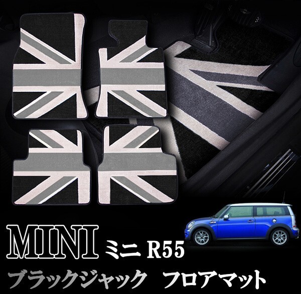 > BMW MINI ミニ ミニクーパー R55 室内 フロアマット カーペット ジュータン ブラックジャックデザイン 右ハンドル ナイロン製 1台分セット
