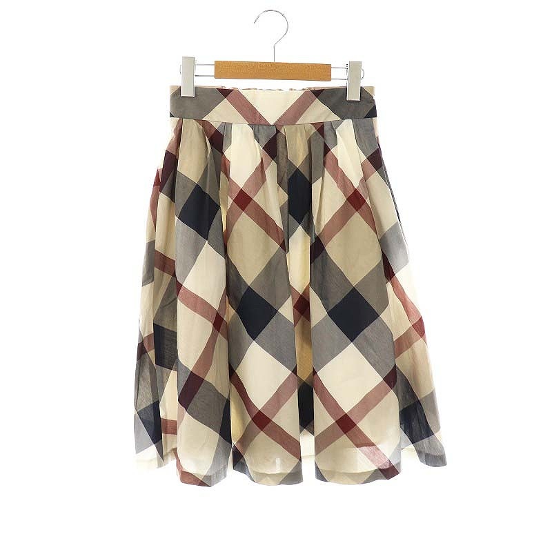 > ブルーレーベルクレストブリッジ BLUE LABEL CRESTBRIDGE チェック フレアスカート 膝丈 36 ベージュ 紺 赤 /NR ■OS レディース