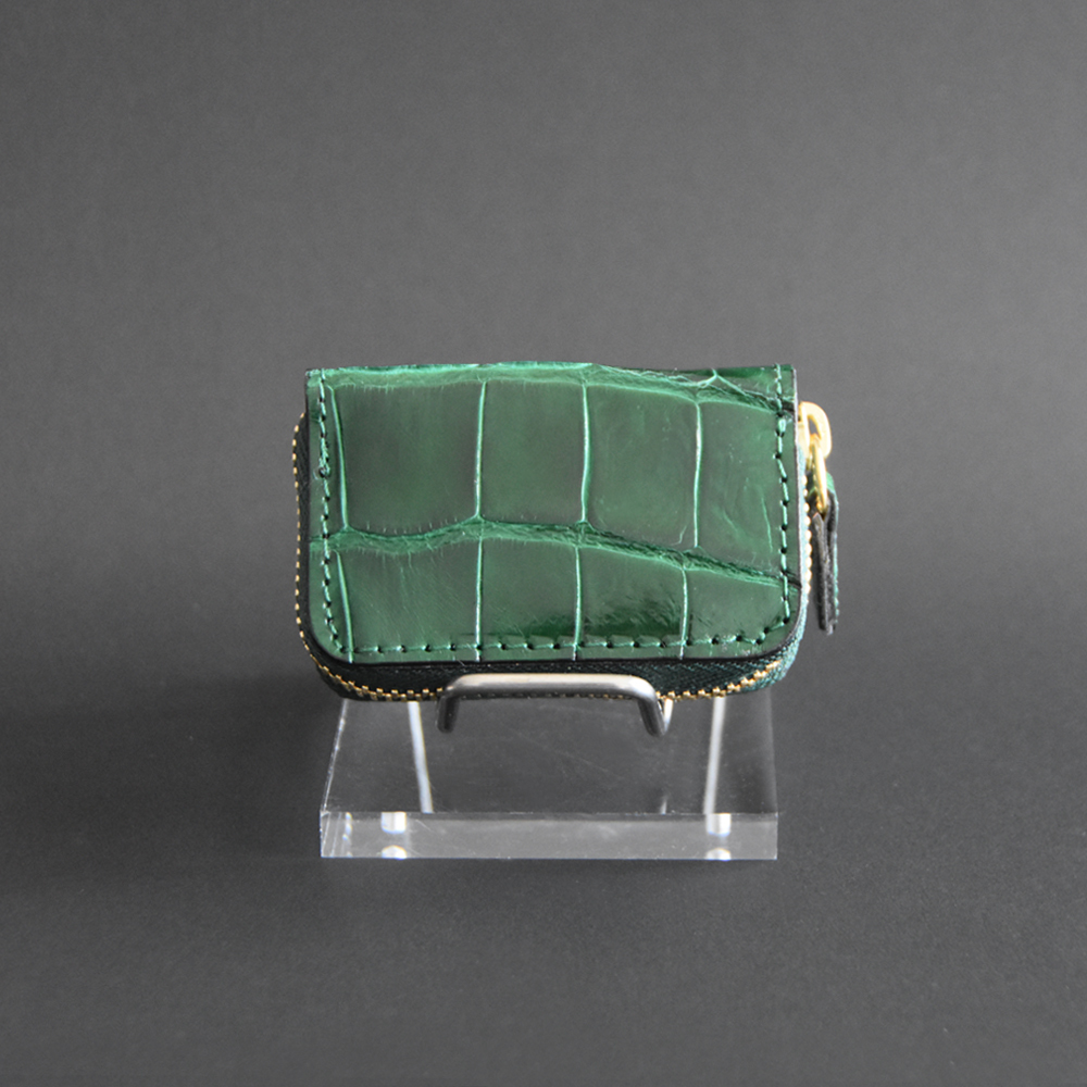 - 現品お届け◆[Laquju] クロコダイル ミニミニコインケース メンズ レディース 本革 財布 小銭入 レザー◆キプロス グリーン 緑色