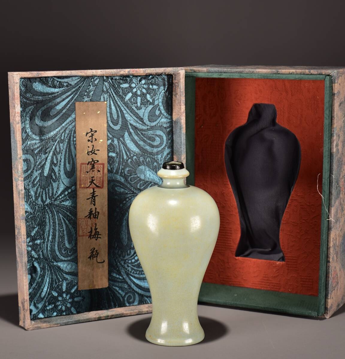 - 宋時代 古陶磁器 汝窯 天青釉 梅瓶 箱付 稀少珍品 文案置物 擺件 時代物 古董品 骨董 旧家蔵出し 唐物 中国古玩 古美術