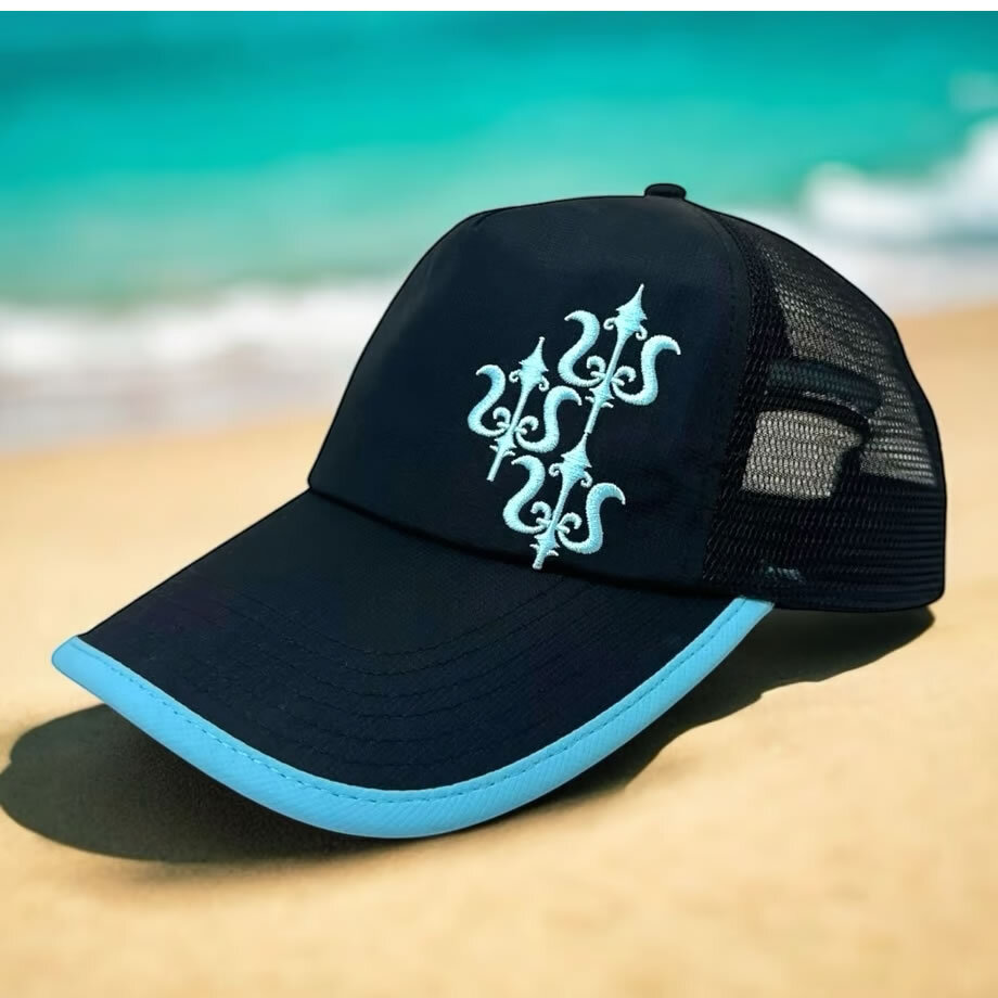 - 水陸両用撥水 C.Marin 小顔魅CAP メッシュキャップ ブラック*シーマリンブルー