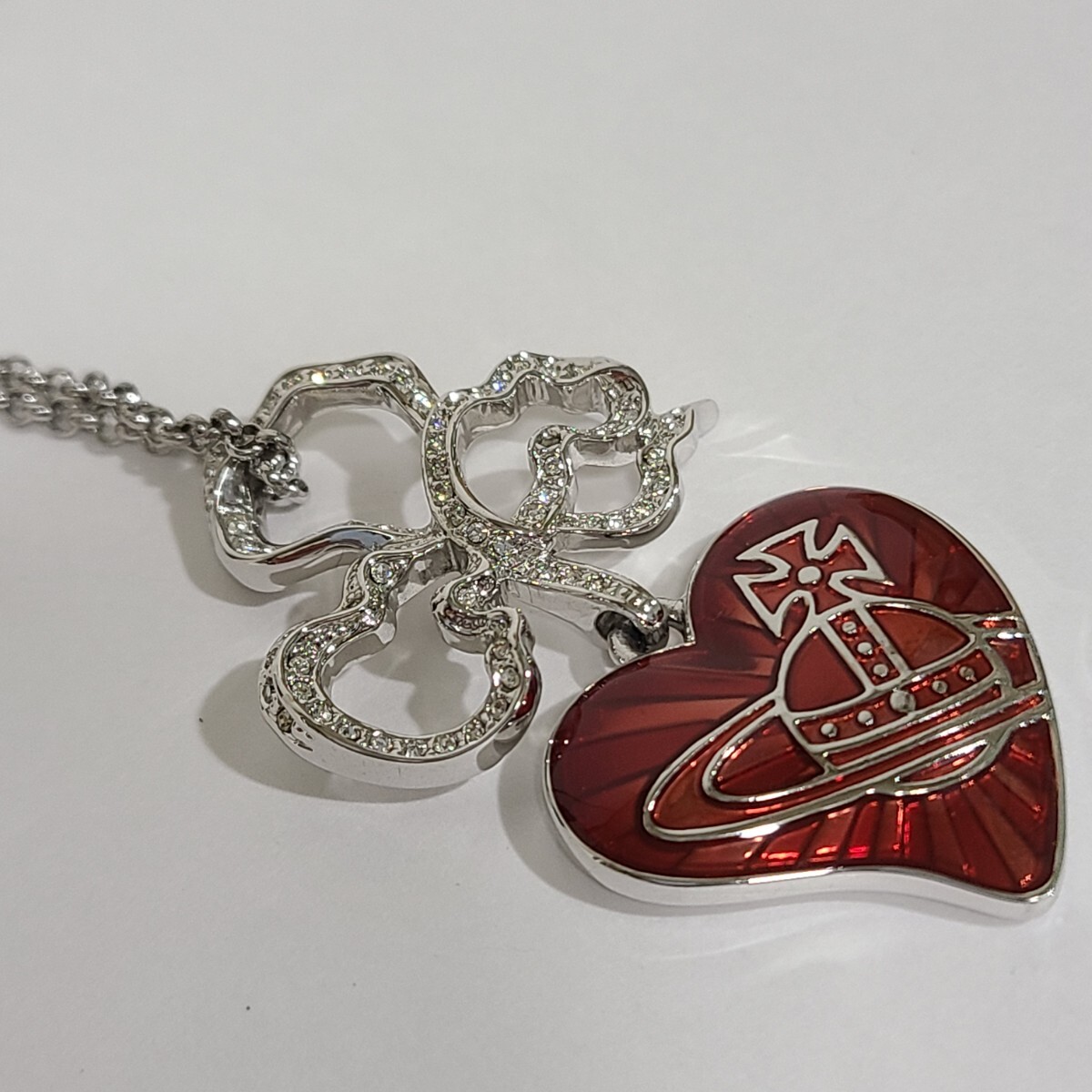 - Vivienne Westwood ヴィヴィアン ウエストウッド ロゴハート オーブ ラインストーン ネックレス ペンダント レッド チャーム シルバー