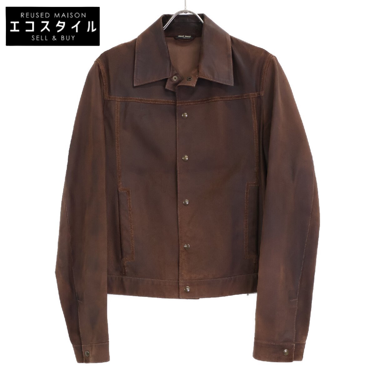 > MIUMIU ミュウミュウ アーカイブ 00s ブラウン フロントボタン レザー ジャケット ブラウン 48 ジャケット レザー メンズ 中古