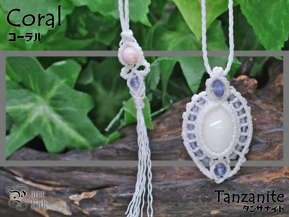 - 『白珊瑚・ホワイトコーラル』『タンザナイト』マクラメ編みネックレス