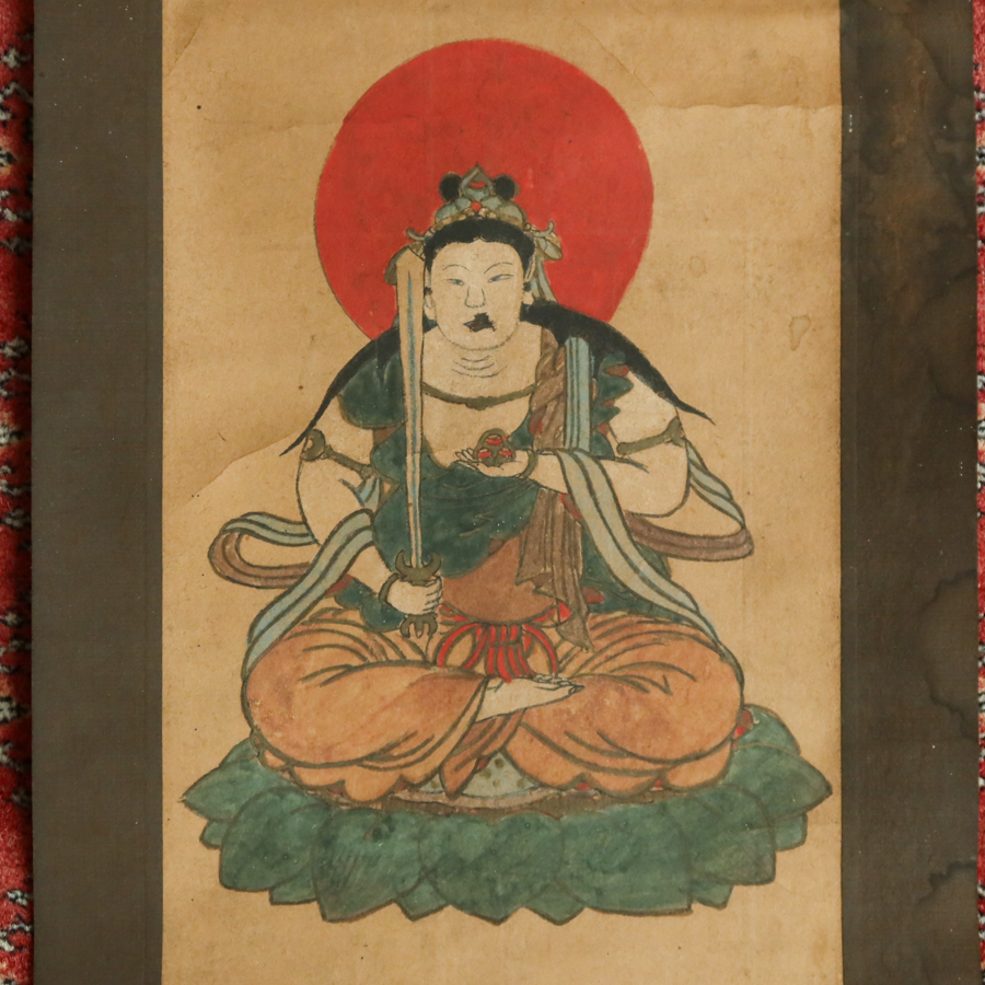 - 【真作】 掛軸 文殊菩薩? 弁財天? 肉筆 仏画 検) 仏教密教神道修験道仏教美術和本古文書護符掛軸