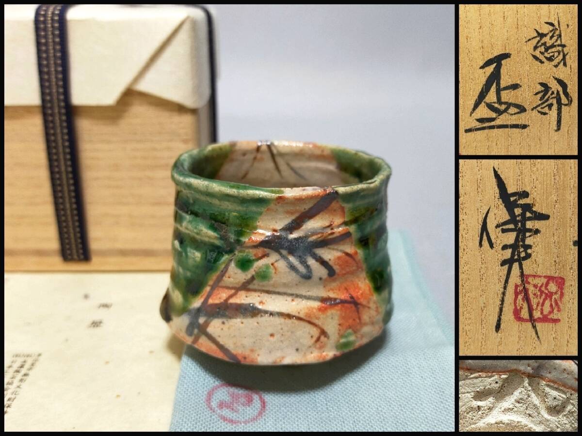- TW09 美濃焼 酒器 玉山窯 名工 玉置保夫 造 織部 盃 ぐい呑 栞・共布・共箱