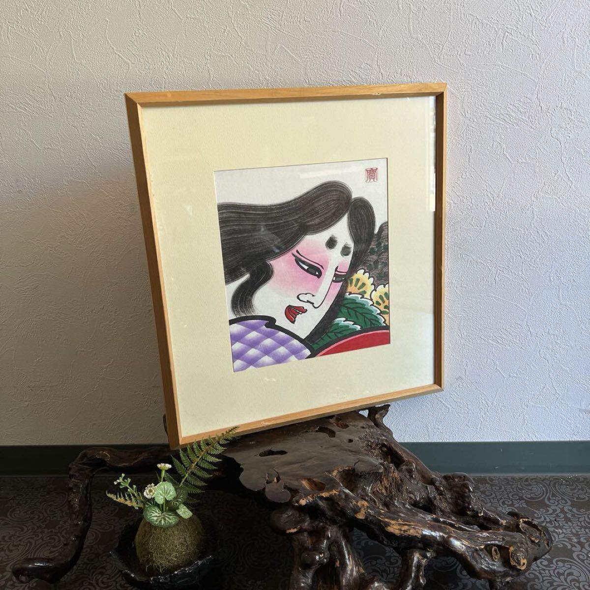 > wasabi k582 力強い津軽の色紙絵 子育大願のご利益があり武の女神とされる「神功皇后」額縁入り 津軽凧絵 ねぶた絵 ねぷた絵 日本美術