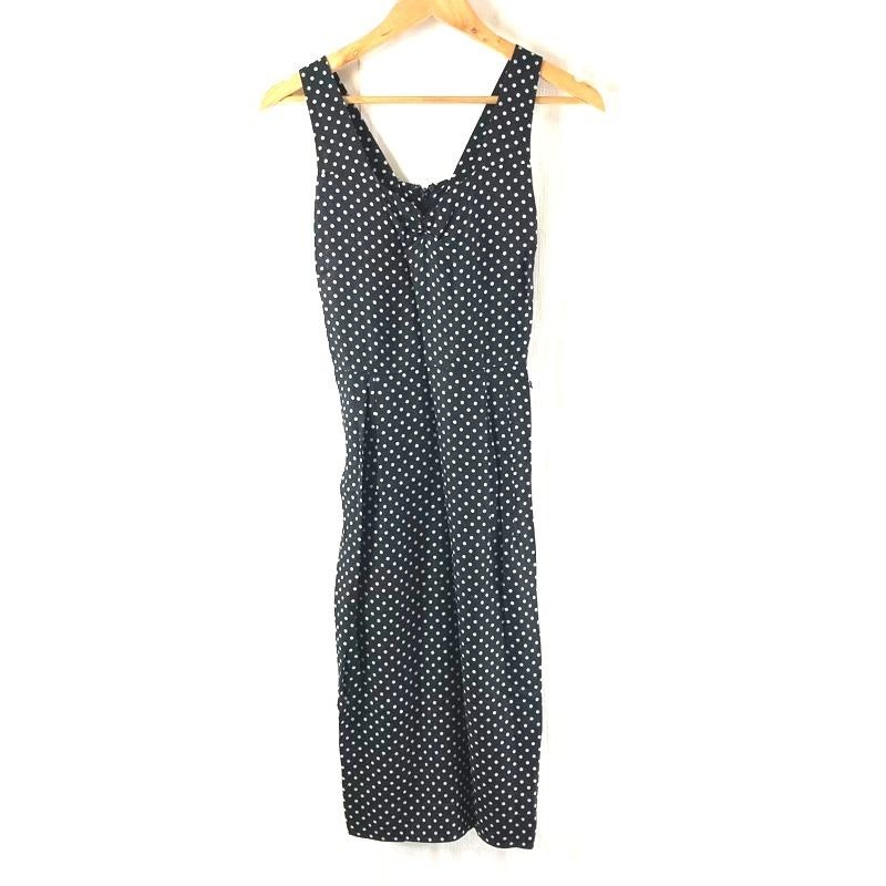 - ジュンアシダ jun ashida ワンピース ノースリーブ 膝丈 ドット Vネック 裏地付き 麻混 ブラック系 7サイズ 2025072900032