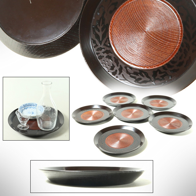 また、お茶席で湯呑みと小さな菓子皿、団子皿をおのせ頂いて一人用の小振りな敷盆代わり等としてもよろしいかと。