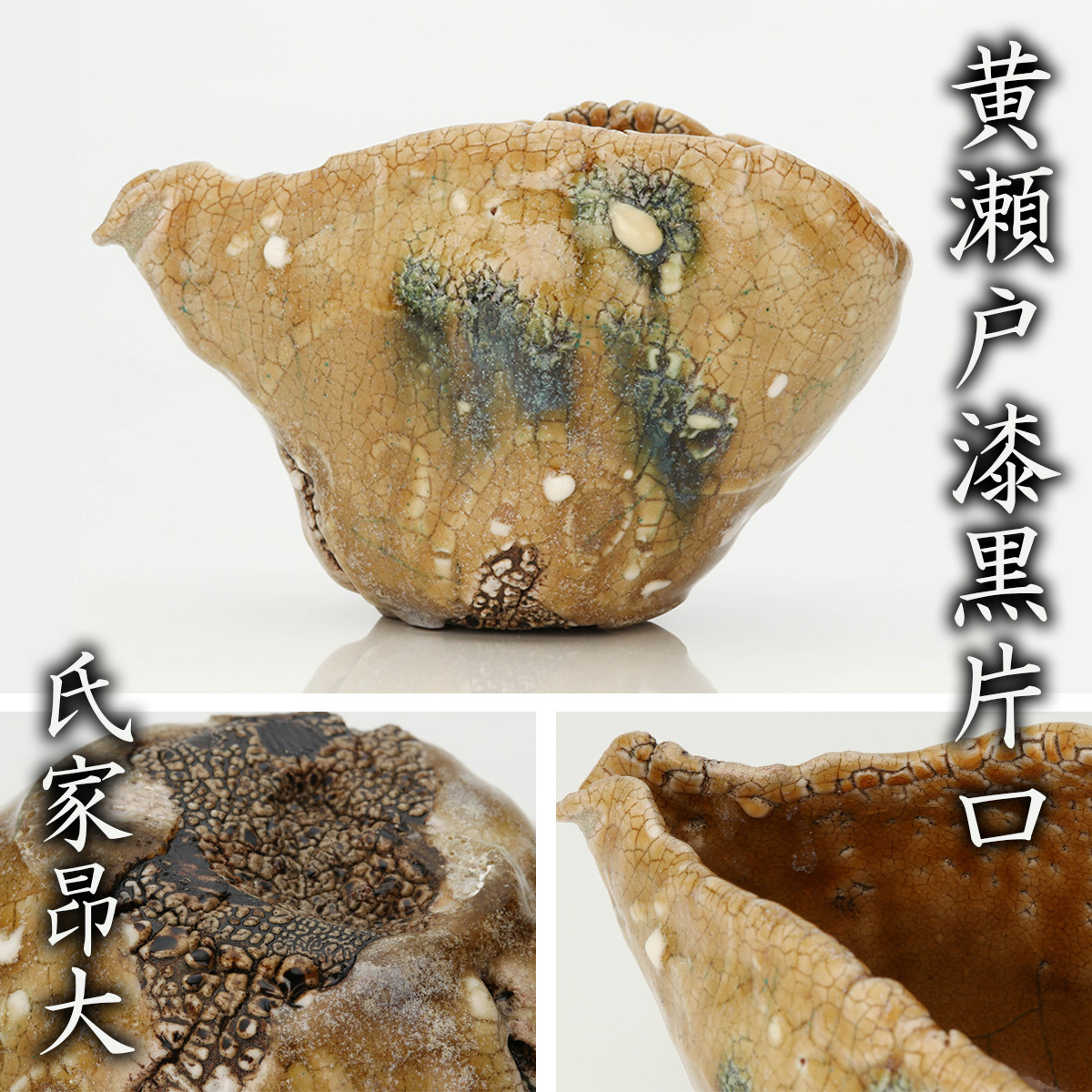 - 氏家昂大『黄瀬戸漆黒片口』希少秀逸作 共箱 共布 栞 本物保証 送料無料【松森美術】