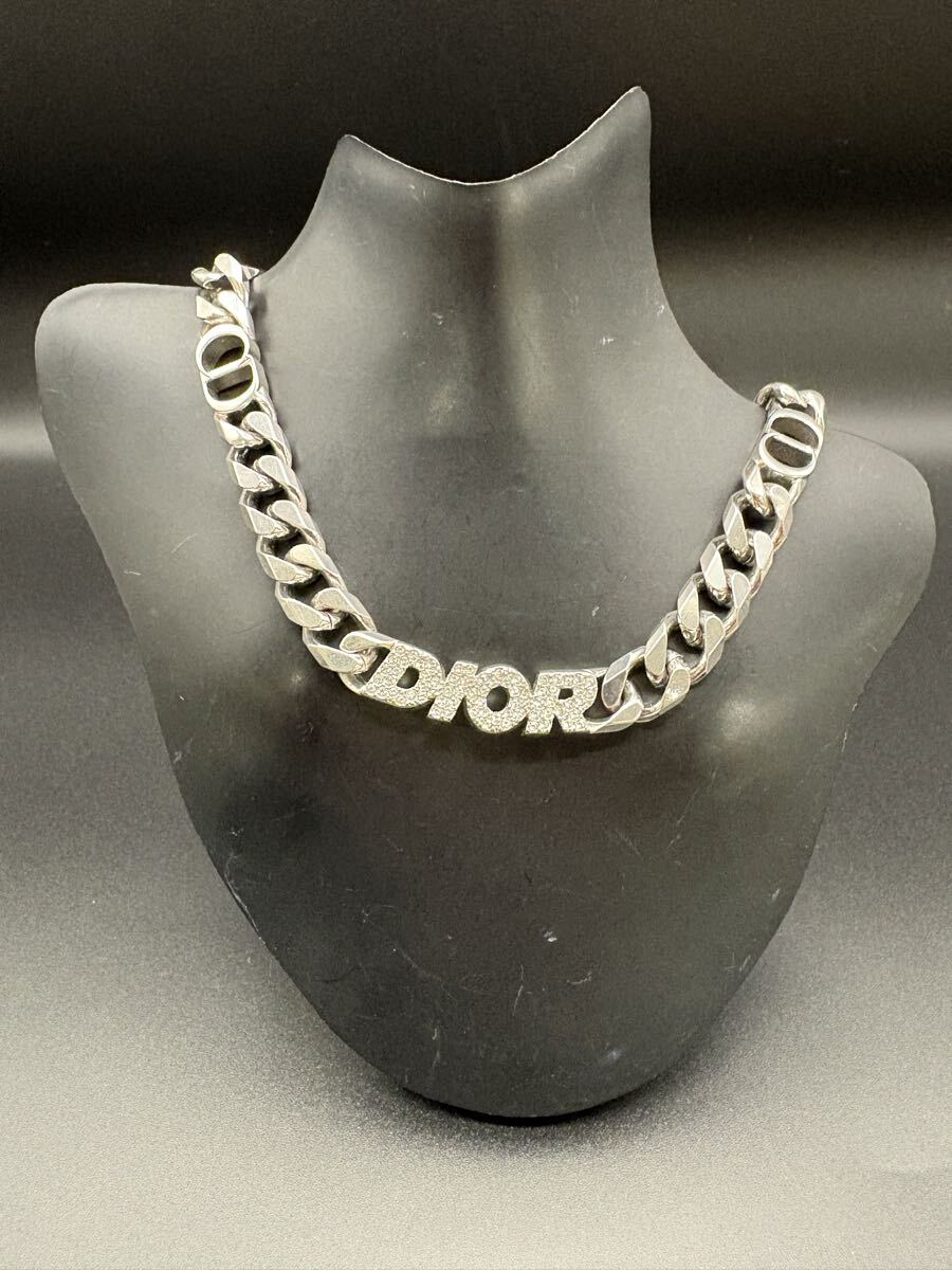 - Christian Dior ネックレス 51【中古品】Dior Homme ITALIC チェーンリンクネックレス ロゴ ラインストーン