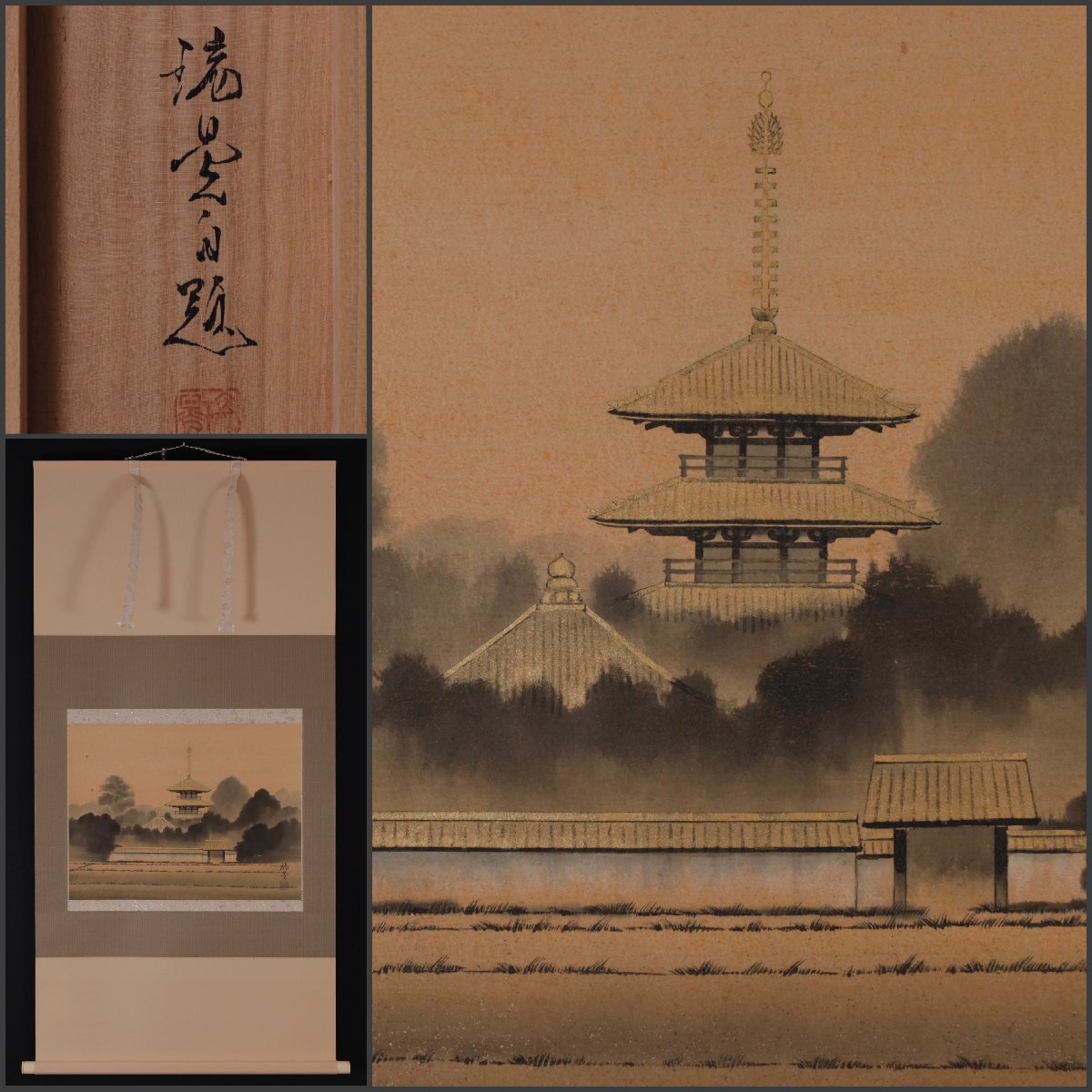 - 【模写】吉】12791 島田瑞晃 法起寺図 太巻 共箱 聖徳宗 仏教 奈良県 生駒郡 斑鳩町 茶掛け 茶道具 掛軸 掛け軸 骨董品